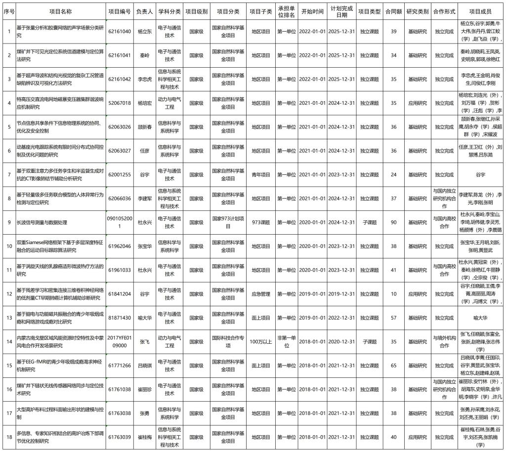 公司2018-2022年纵向项目(国家级)
